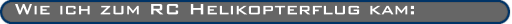 Vor ca. 8 Jahren kam ich nach über 20 Jahren RC Flächenflug zum RC Helikopterflug. Begonnen hat alles mit dem günsten Erwerb eines Kyosho Concept 30. Der Heli, der bereits gebaut und mit allen RC Komponenten ausgestattet war, war dann relativ schnell auf meine MC2020 programmiert und ich stand schon kurze Zeit später mit dem Hubschrauber auf dem Flugfeld. Nun begann also das Marthyrium. Ich ging dabei ziemlich in die Vollen und mußte auch ordentlich Lehrgeld dafür bezahlen. Aber wie heißt es doch so schön: "im tiefen Wasser lernt man schwimmen". So ging es dann also Schritt für Schritt, mit diversen Flugpausen, die auf die ziemlich langen Lieferzeiten der Ersatzteile zurückzuführen waren, in der Helifliegerei voran. Vom Schweben mit Trainingsgestell zum kurzen Rundflug kam ich eher unvorhergesehen, da mir der Heli beim Schweben etwas auskam und ich somit gezwungen war das Teil irgendwie in der Luft zu halten um es möglichst ohne Schaden wieder einfangen zu können. Ich sag mal, dank meiner mehr als 20-jährigen Modellflugerfahrung ist mir dies auch ziemlich gut gelungen. Zwar etwas wackelig, aber ohne Schaden. Ich muß sagen, daß mich diese unvorhergesehene Aktion bei meinem Vorhaben das Hubschrauberfliegen zu erlernen um ein großen Schritt nach vorne geabracht hat. So war ich binnen kurzer Zeit in der Lage kleine Rundflüge zu machen. Diese wurden immer weiträumiger und fließender. Man kann schon fast sagen es war geschafft. Was nun folgte, war eigentlich nur noch Erfahrungen mit dem Heli zu sammeln. Auch Übungen wie Nasenschweben kamen hinzu, wobei mir diese nicht sehr schwer fielen. Denn auch beim Flächenflug muß man ab und an auf sich zu fliegen können. Einige Wochen später mußte ich dann unbedingt mal versuchen einen Looping mit dem Heli zu fliegen. Ich bin fast selbst erschrocken bei diesem Anblick. Schwupp und er war rum. Hätte ich nicht gedacht, daß das so ohne wieteres gehen würde. Wiederrum einige Wochen später stellte sich deine bei meinem Concept 30 ein Motorschaden ein. Nach einigem Hin und Her entschied ich mich für einen Benzin Trainer der Firma Vario. Der Hubschrauber war ziemlich zügig fertig gestellt und es ging genauso zügig auf den Flugplatz. Und siehe da, auch ein Umstieg auf den im Vergleich sehr großen Benzin Trainer klappte. Es war ein ganz anderer Anblick, als dieser Heli vor mir schwebte. Ich muß aber auch sagen, daß dieser viel ruhiger schwebte als der kleine Concept. Soviel zu meinen Anfängen in der königsklasse des Modellfliegens.